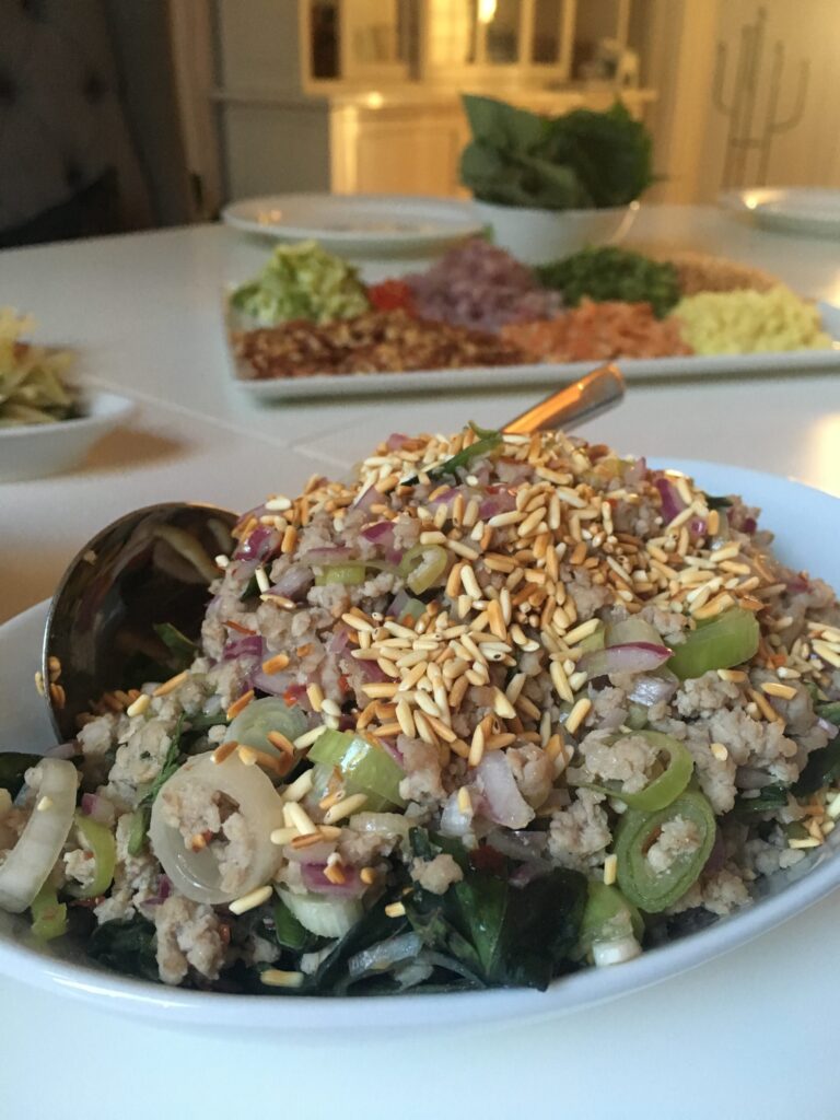 Dette er en klassisk delerett. Ta et blad, og fyll det med alle ingrediensene. Pakk det inn og putt det rett i munnen 🙂